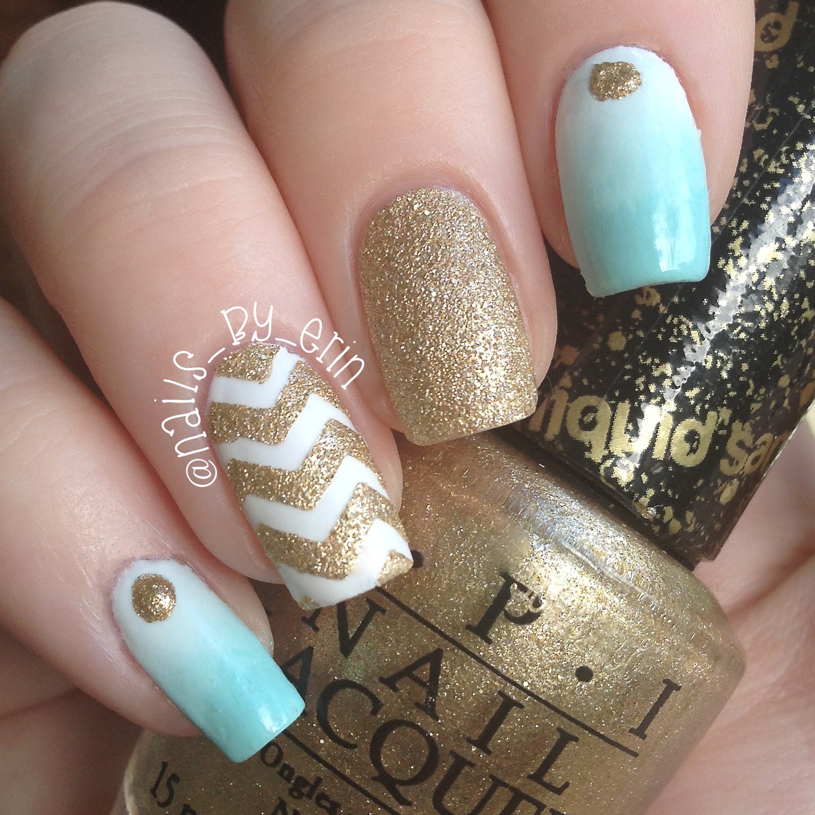 Next up is, of course, my mint and gold gradient and chevron nails. You guys probably know by now that I swear by OPI Liquid Sand “Honey Ryder” and using this polish for the chevron and gold accents made me fall in love with this design! I definitely have to wear it again soon.