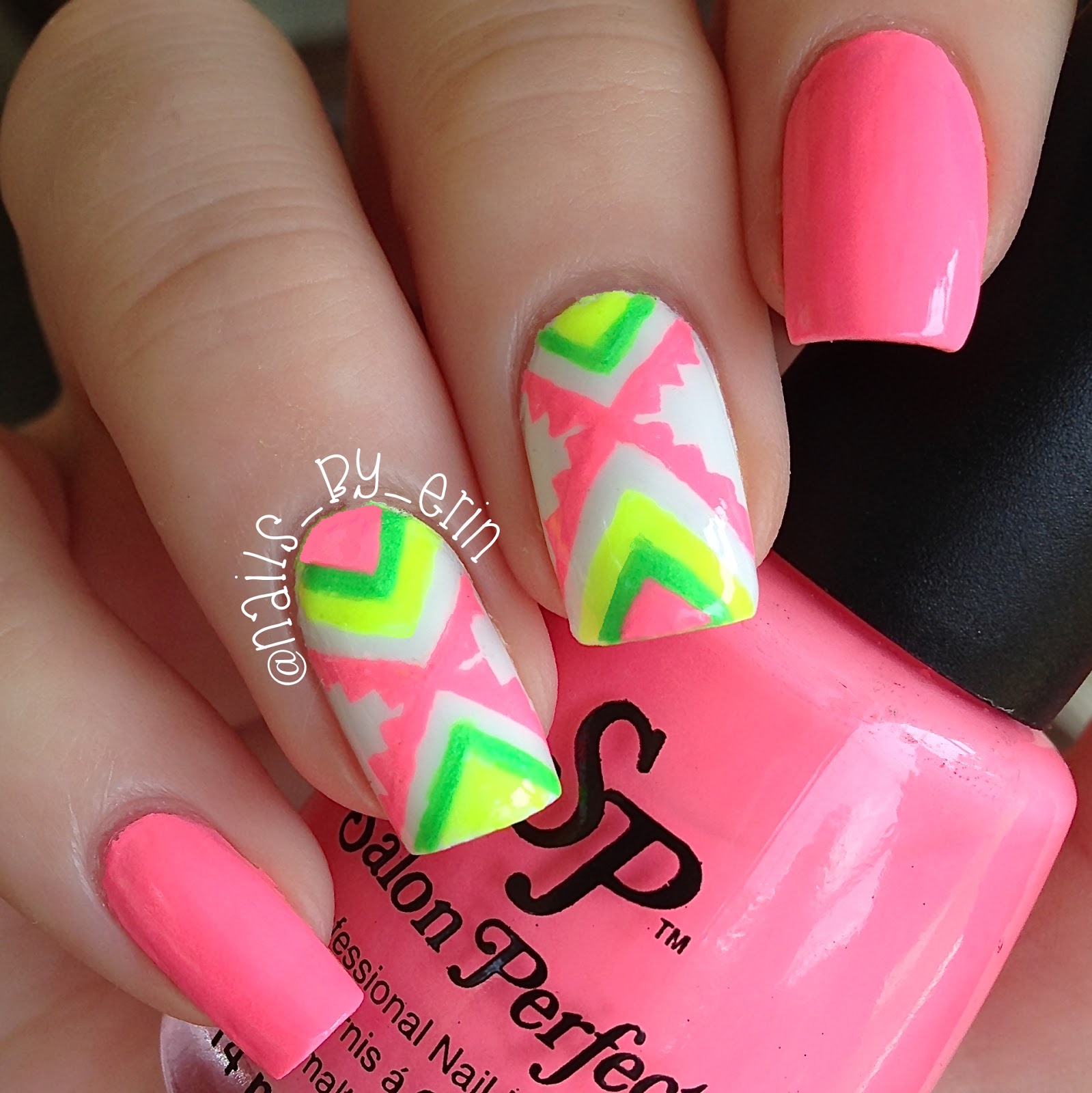 And last, but not least, I have my neon aztec mani. I had never really had too many neons before getting the Neon Pop collection from Salon Perfect, so this aztec mani was pretty new for me. I had seen the style of this design a lot and wanted to try it. I am so happy with how it came out! I remember wearing it for a few days and loving how much the neon looked with the aztec print. It was such a fun mani!