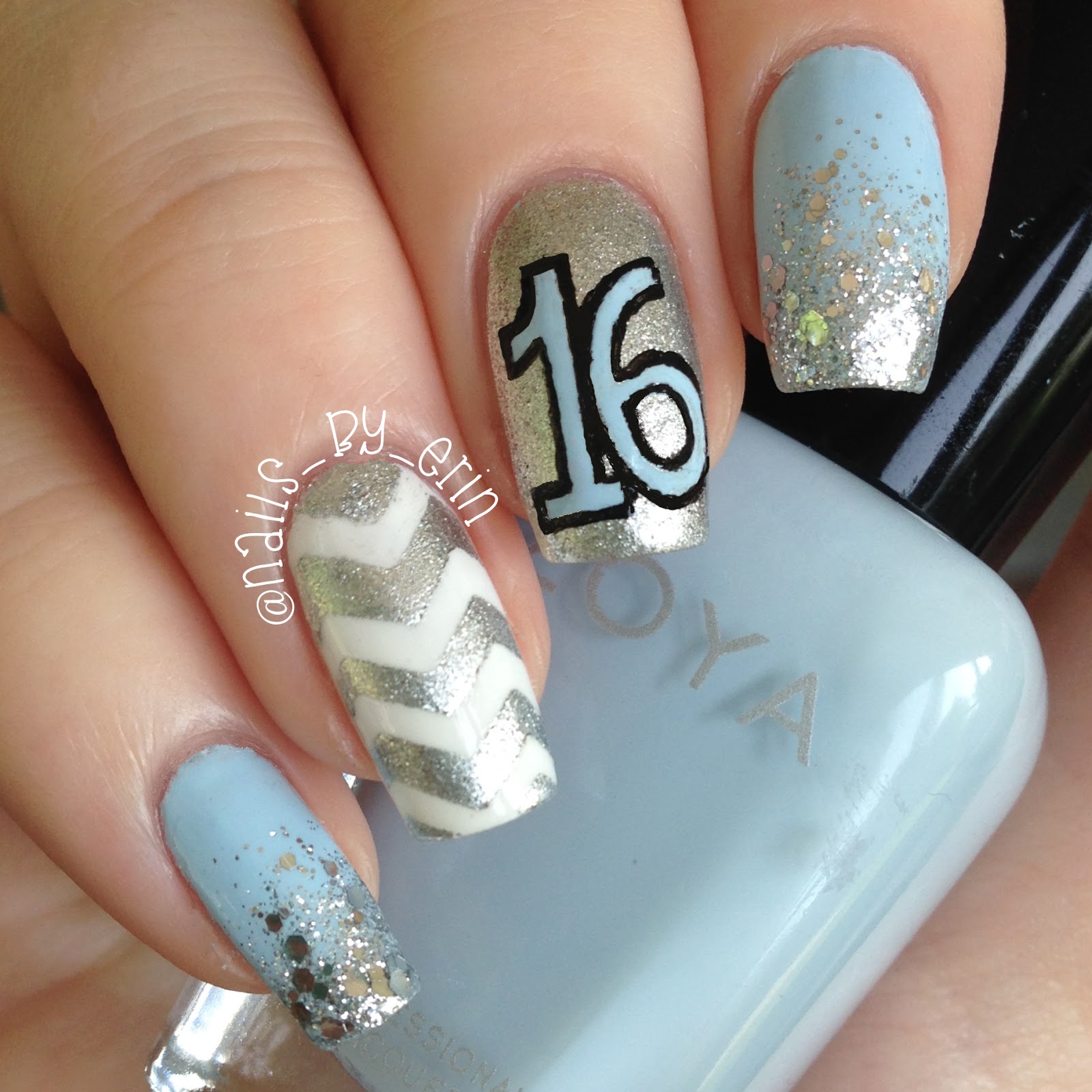 Of course, I had to include my Sweet 16 nails! When I turned 16 this year, I wanted to have a design that was completely my style and perfect for my birthday. I am so happy with how they came out! Chevron, blue, and glitter!!!