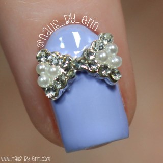 The bow is made with white pearls and silver stones. I think that this would look great with elegant designs, simple designs like this, or even super blinged-out manis.