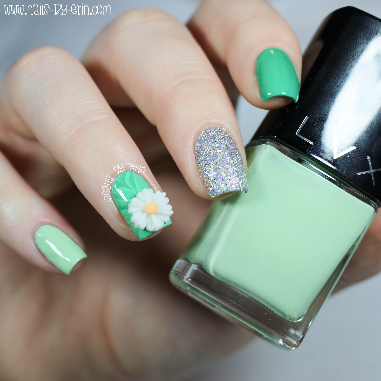 I choose to use Salon Perfect “Escape to Neverland” and LVX “Mynt” for the green watermarble. They went together so nicely and they marbled beautifully! I also did another glitter accent nail using Colores de Carol “Bling”. I used to do nothing but glitter accent manis, so clearly that obsession of mine has been coming back. Haha, I just love what it adds to every mani!