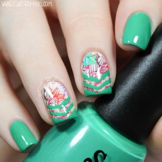 I used Salon Perfect “Escape to Neverland” (the green polish) to match the little bits of green in the decal.