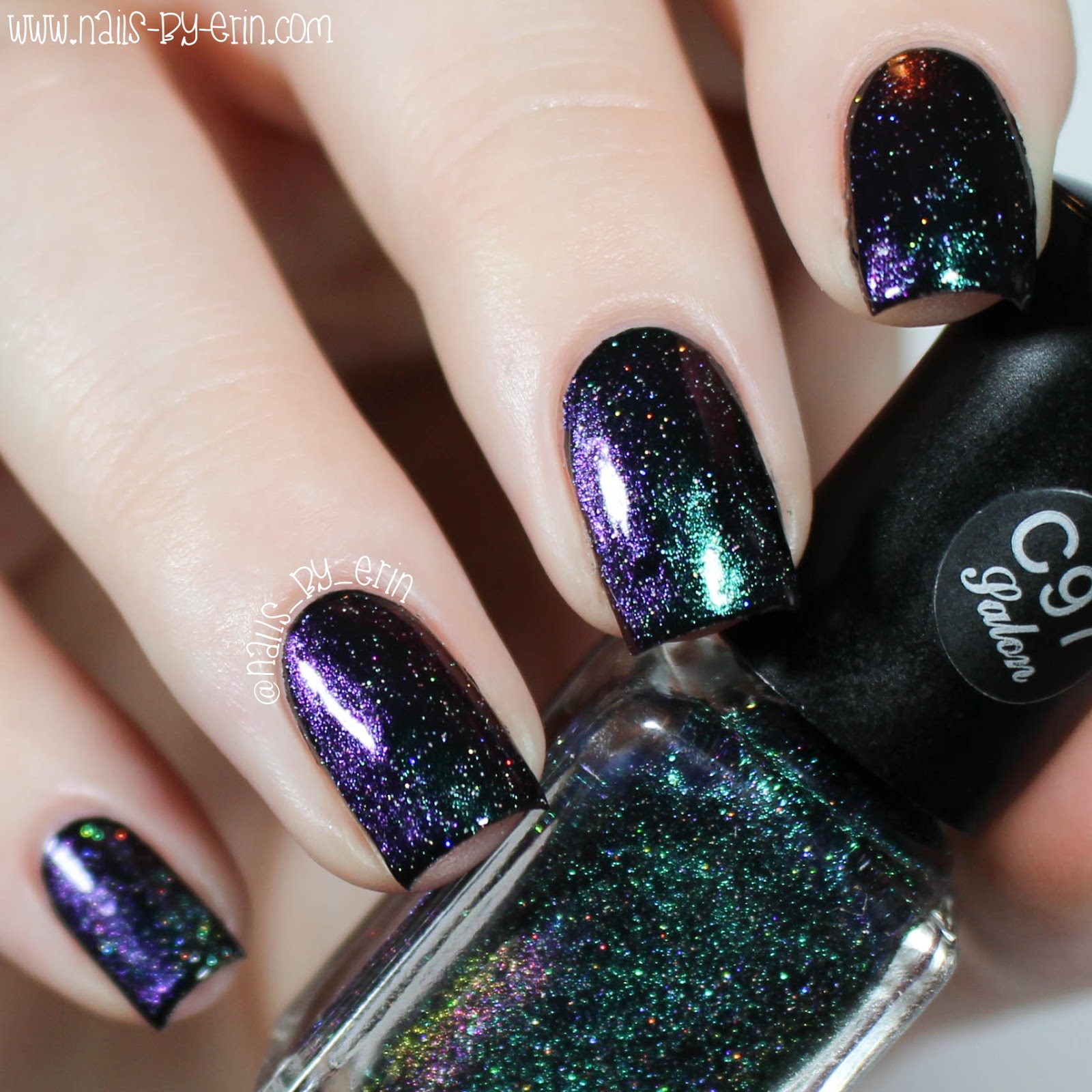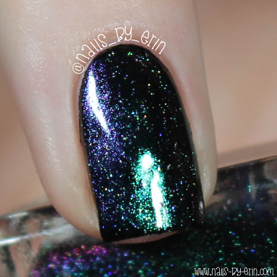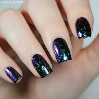 The Starry Sky polishes are a holographic, shifting micro-glitter polish that looks best layered over black. They make your nails look like you have the galaxy on them! 🙂