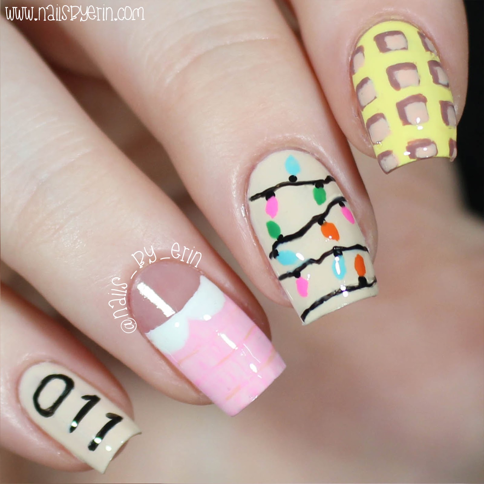 On my middle nail, I painted some Christmas lights, which were an important part of season 1!