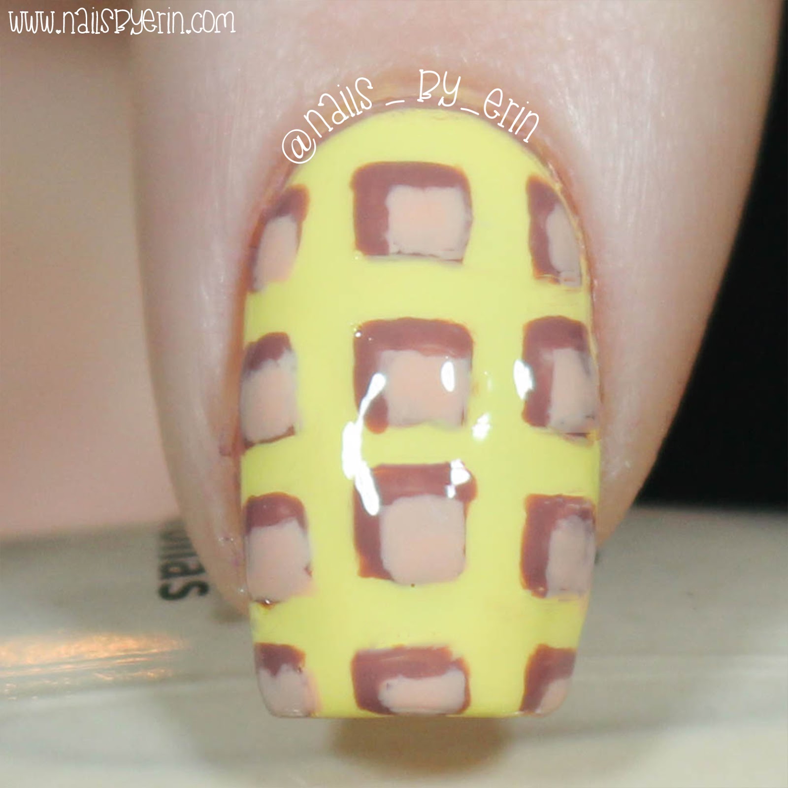 On my index nail, I painted an Eggo waffle. This was much harder than I expected, and I feel like I didn’t have quite the right colors to make this look realistic. Does it look like a waffle? I hope it does. 😂