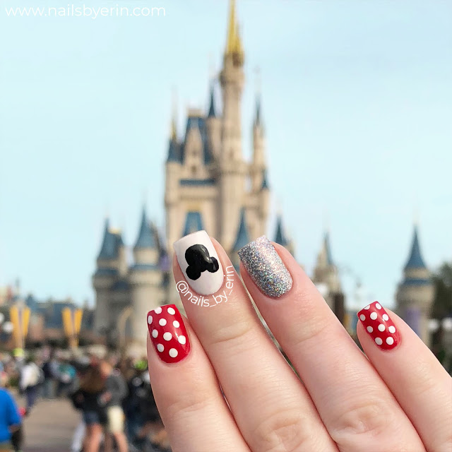 Like I said, this is a re-do of my Mickey Nails from 2015. I really love these because they have the Mickey head logo, but also pull in a bit of Minnie with the white polka dot over red!