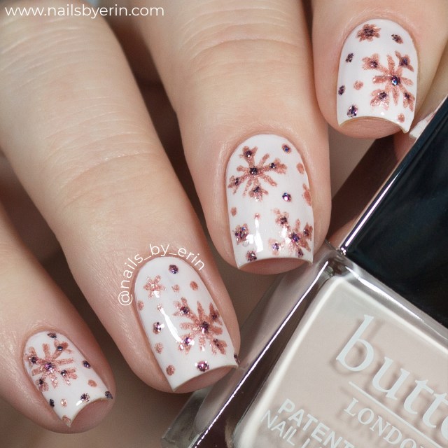 And last but certainly not least are my rose gold snowflake nails that I did for my Instagram takeover for butter LONDON! These were such a different holiday design for me, and I really love how they turned out. Not to mention it was such an honor to take over their Instagram for this tutorial! (Psst, you can still watch the video in their Instagram highlights, just check the “Takeovers” one). Plus, you guys know I’ve been loving rose gold this year!